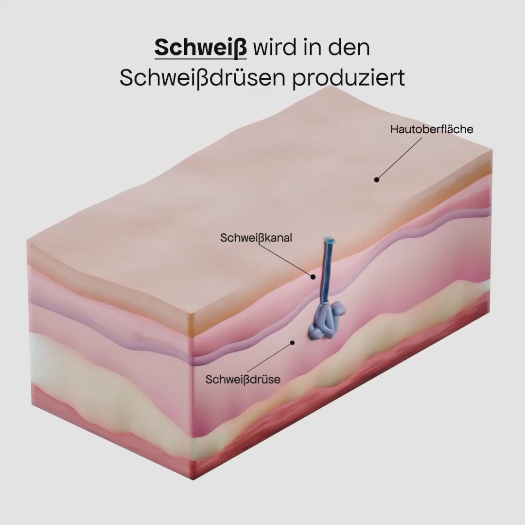 Unser Produkt wirkt durch das in Alkohol gelöste Salz. Über Nacht zieht die Lösung in die Haut ein und verhindert, dass Schweiß an die Oberfläche gelangt. Das Salz wird nach einigen Tagen auf natürliche Weise abgebaut, ähnlich der natürlichen Zellregeneration. Deshalb muss es nur alle paar Tage angewendet werden.