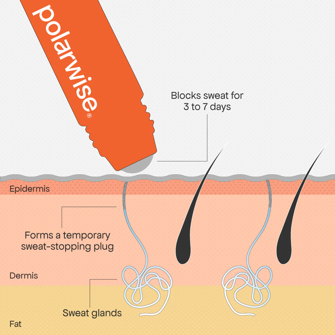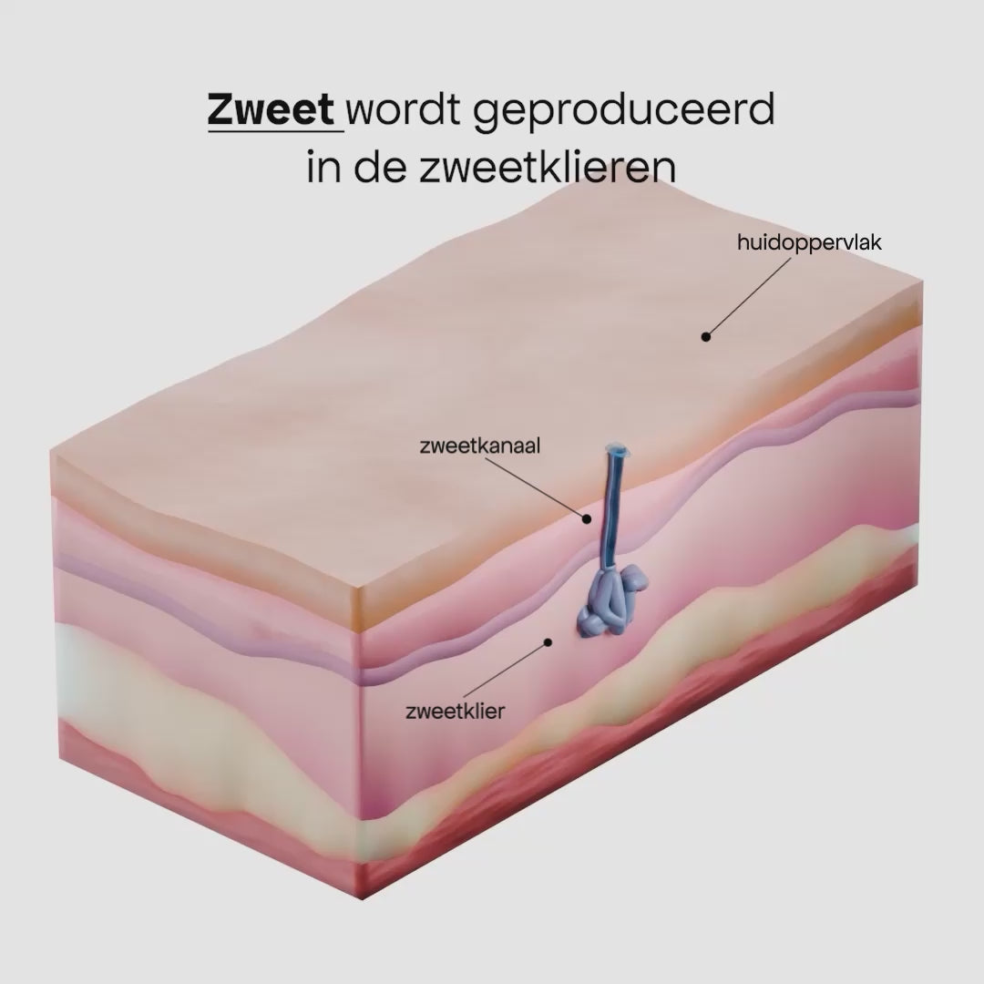 Ons product is effectief vanwege het oplosbare zout opgelost in alcohol. De oplossing wordt 's nachts in de huid opgenomen en voorkomt dat zweet het huidoppervlak bereikt. Het zout verdwijnt op natuurlijke wijze na een paar dagen, net als de natuurlijke vervanging van dode huidcellen. Daarom hoef je het maar één keer per paar dagen te gebruiken.