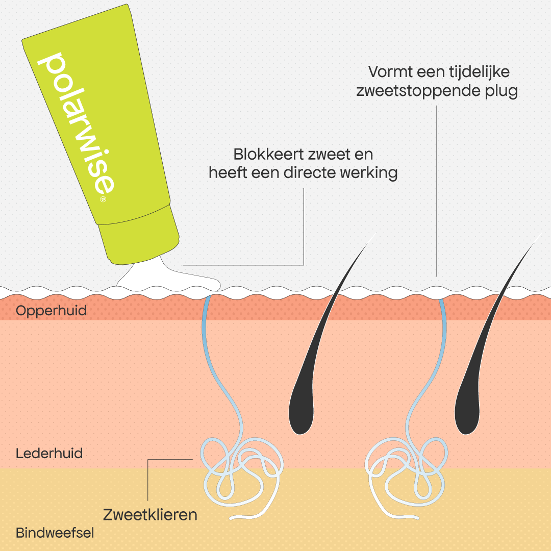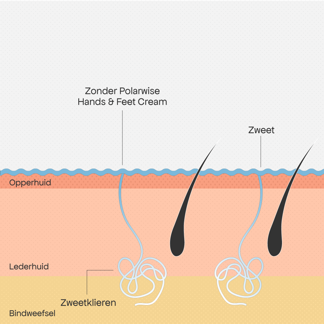 De Hands & Feet Cream is effectief vanwege onze speciale formule. De oplossing wordt 's nachts in de huid opgenomen en voorkomt dat zweet de oppervlakte van de huid bereikt. Het zout verdwijnt natuurlijk na enkele dagen, met de natuurlijke vervanging van dode huidcellen.